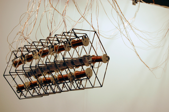 Carolin Liebl und Nikolas-Schmid-Pfähler Sie (1) 2016 Magnetische Spulen, Stahl, Kupfer, Hochleistungskunststoff 42 x 20 cm Inv.-Nr. 4554
