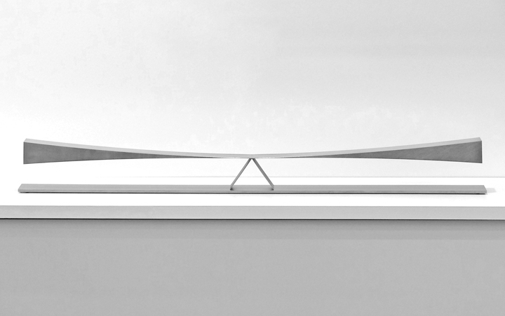 Martin Willing Doppelschwinger 2013/2017 Duraluminium, mit Vorspannung aus Block geschnitten, auf Edelstahlplatte Höhe 14 cm, Länge 140 cm, Ex. 6/10 WVZ-Nr. 2013-02, Inv.-Nr. 5121